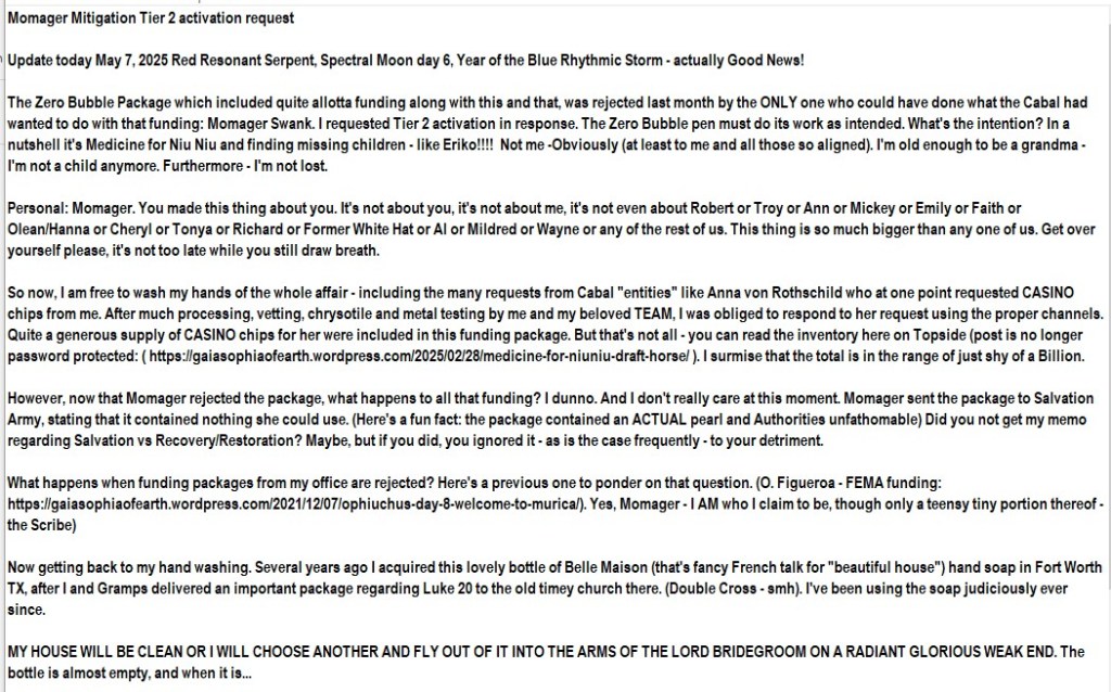 Rick Steves and the Singing Nun promoted murderous iconography with songs and dances and all manner of delights. What’s to be done about this? Well… the temporary solution is cheap but complicated. The permanent solution is expensive but simple. Neither solution is easy. Among other actions, this involves firing OMAR the idol maker, Churning of the Milk and removing the Sith Lord’s toe hold. Y’all were warned were you not? If not, why not? Did your overlords fall before they could relay that message to you? That’s not our business. You established your insidious Protocols of the Elders and chains of command. *Cries. This is me ignoring you. I must attend to the wounds of my children and my Family which you have tortured relentlessly. They will receive my Comfort – did I mention perpetuity? Yes. It’s your hell now. Please clean it up, make it livable and keep it clean – just as WE, We, we have shown you. Throw snowballs and plant hydrangeas. Those who sew hell shall reap the fruits of what they’ve sewn – just as it is for the heavens. First responders are NOT among those hells. They have their own Family Heritage and Legacy to attend to – and so do you.