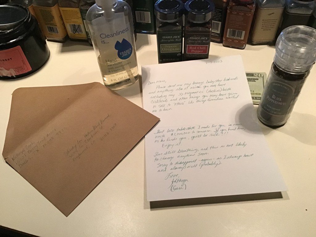 St. Bernard said: “Woof, Woof” then trolling the neighborhood like a fine bird dog he spotted a perfect hand-crank ice cream maker – the product of a Cooper with a lovely metal Eagle plaque on the side. It reminded him of the barrels he carried on his rescues in the high country. With delight, Alcyone displayed it prominently on her porch and invited all her family to help plan the event. But after months of invitations, not one RSVP was received.
