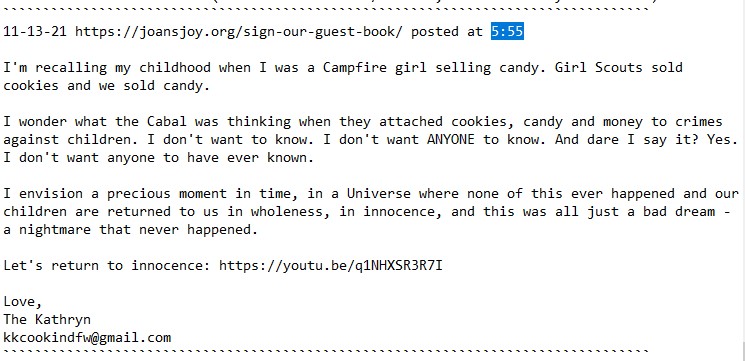 Last November, The Kathryn attempted to sign Joan’s Joy’s guestbook, but it wasn’t ever published. So I’m posting it here for your edification. This might give some a “framework” into a larger perspective.