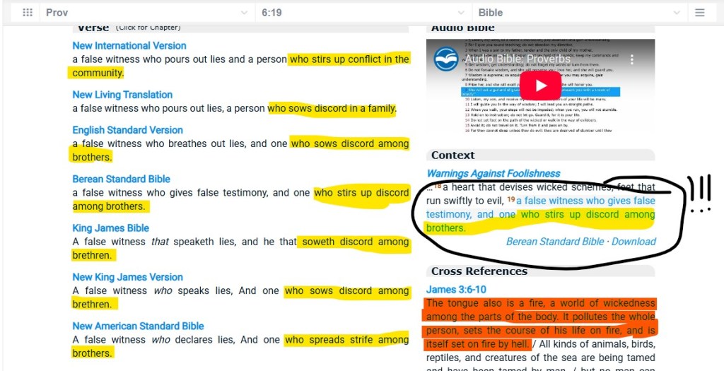 One who spreads discord in the community/family/among brethren is in the same category as MURDERERS on the list of things that the Lord finds abominable. Why do you suppose that is so?