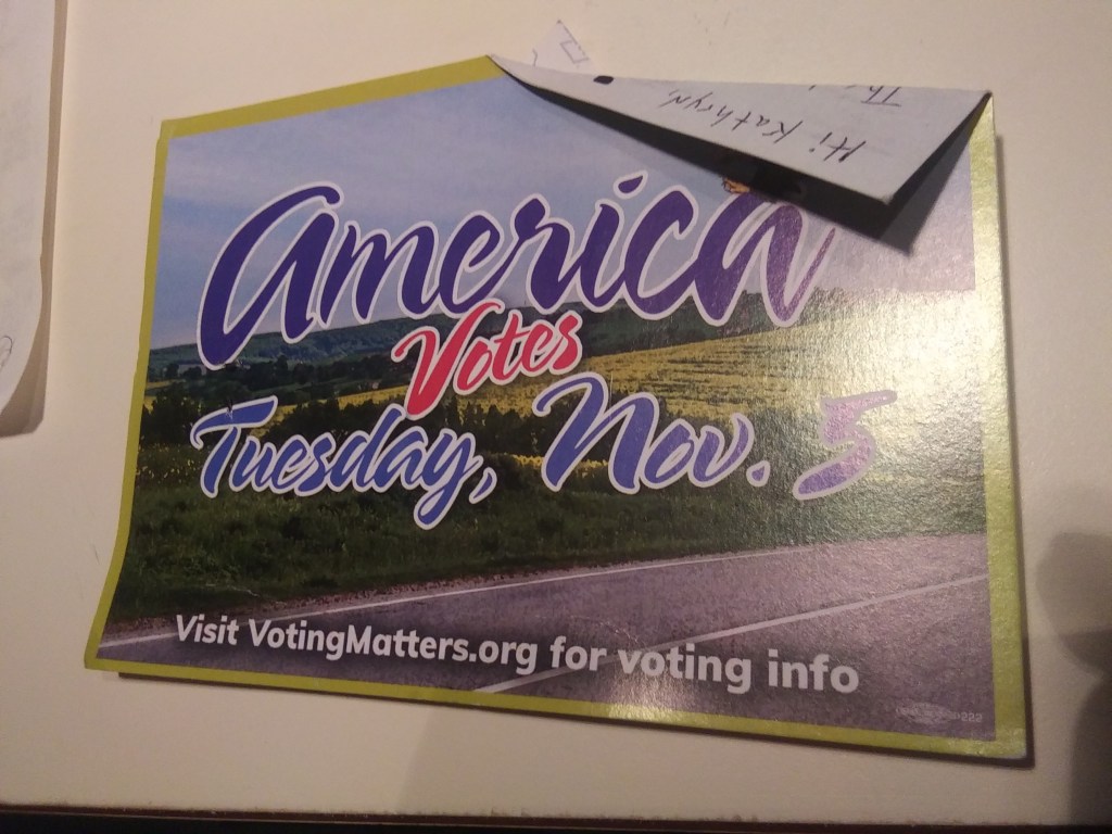 Thank you for being a voter! Who you vote for is private, but whether you vote is public record. Please vote in the Tues. Nov. 5 election!