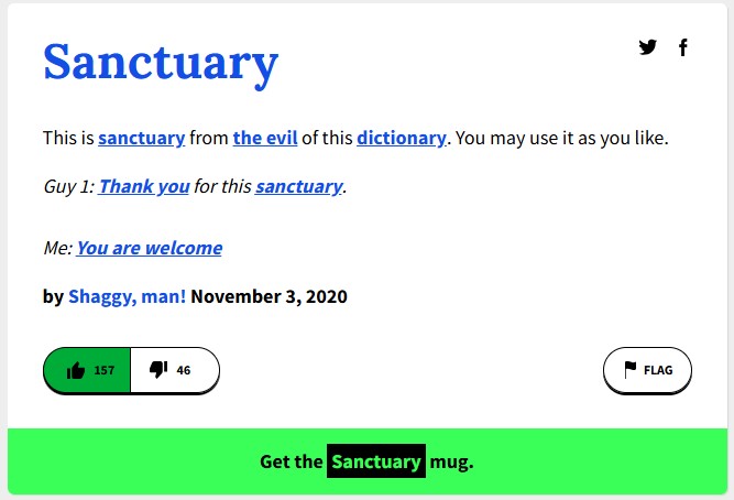 Urban Dictionary. Thank you so much for Sanctuary. I would pay one gold Credo for this mug