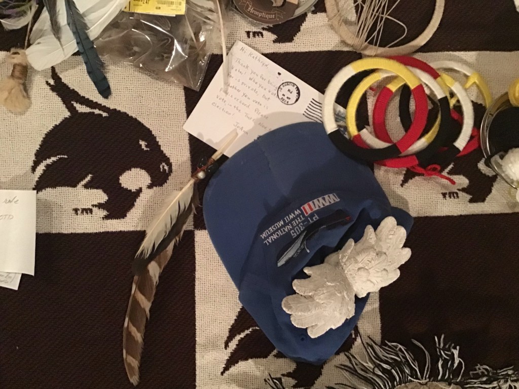 JoAnn hand wrote this message personally to me. I received it only minutes after I had visited my Hobby Lobby wearing my PT-305 hat (with a broken bill) from the National WWII Museum in New Orleans though it was postmarked 8 days prior. As I walked into the store thinking about the hemp fibers I was about to buy for a DreamCatcher, I was stopped by an old decrepit boomer guy who noticed my hat and assumed I was a voter of a particular persuasion. He immediately proceeded to tell me who was going to win and how much "work" his wife had done in that effort.