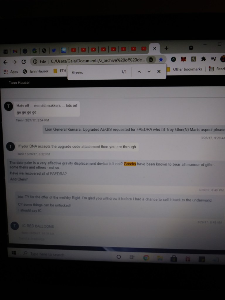 She said “The date palm is a very effective gravity displacement device is it not? Greeks have been known to bear all manner of gifts – some theirs and others – not so.” 3/28/16 8:48 PM (this convo referring to Nineva and Sennacherib https://en.wikipedia.org/wiki/Sennacherib dig.)